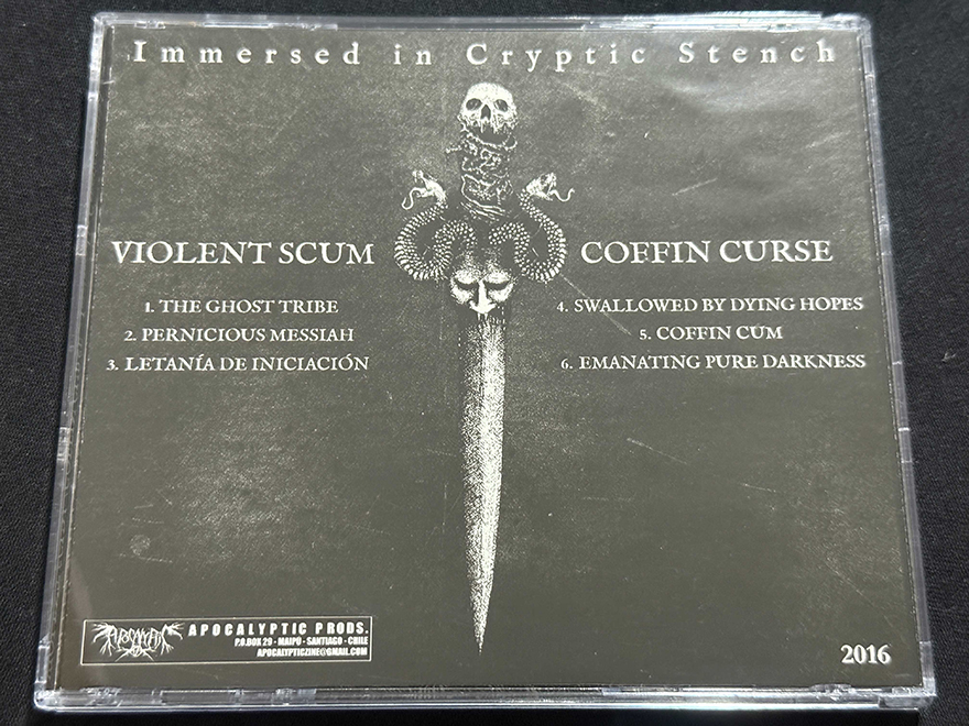 VIOLENT SCUM/COFFIN CURSE “Immersed In Cryptic Stench” USADO 9/10″